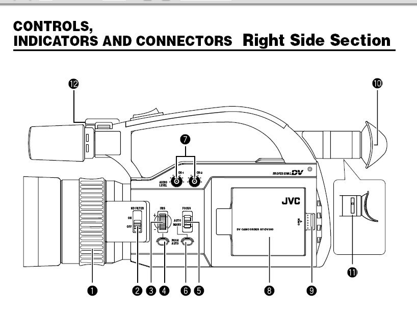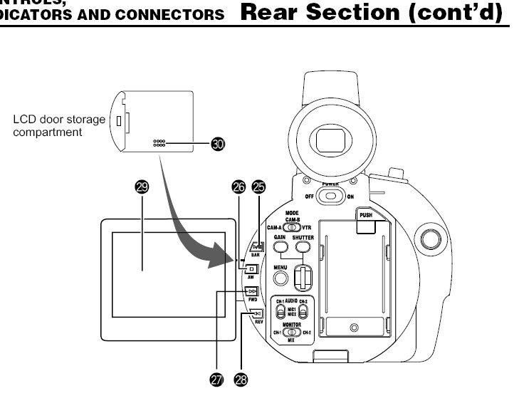 | 1 | A câmara GY300 apresenta dois "modos", CAM A e CAM B,que permitem salvar duas configurações de uso diferentes. Essas configurações são selecionadas por um interruptor atrás da câmara. O motivo dessas duas configurações, é que a câmara é operada principalmente por SOFTWARE e menus - o que torna sua operação demorada, e demanda memória (por parte do operador!) | |